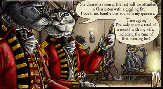 I love finding new ways to share 18th century history with people, and when I find someone else doing it (and doing it well) I love to point them out. Tamara ‘Meezer’ Clarke is an incredibly talented writer and illustrator with a unique way of bringing history to life. She has created an educational, episodic, online, graphic novel of pre-Revolution Boston that is stunningly accurate in its visual details. That was a lot to take in--let’s bullet point it. -Yes it is educational. -Yes it is an online story. -Yes it is a graphic novel. -Yes it is accurate--probably the most historically accurate catalog of British uniform images online. -Yes it is free (but we highly recommend supporting the work through online donation). Now I have to tell you up front that the conflict is told primarily from a Tory/Loyalist/British point of view. Meezer is a Canadian, and her perspective is that of a person whose own country was really born out of the Revolutionary conflict along with the United States. The population of Canada more than doubled at the end of the Revolutionary war as Loyalists and others resettled north. The British and Tory characters that Meezer has created speak and think as people would have then. They view the colonials as dishonest, disloyal and ungrateful, so don’t expect any High Sons of Liberty speeches here. Do expect a vivid picture of the growing tensions in 1770’s Boston. There is one other small detail I should mention about this great gift that Meezer has offered out of her talent, time and passion. The characters are all cats. Really. Yes I mean the furry, adorable, parasitic, and sometimes-spooky domesticated felines you are thinking of. If you are a cat lover and a history lover, this is possibly the best of all worlds for you. I highly recommend Loyalty and Liberty, the Powder Alarm. If you don’t like it you don’t have to pay a thing, but if you find yourself (as I did) amazed by the talent and time put into this series you can donate to support it. It is considered a PG-13 story, so read it before you let your kids at it and keep your Patriot filters in to avoid being converted by those bloody Tory cats. You can find the book at http://loyaltyliberty.com/?p=4 or visit the main page at http://loyaltyliberty.com/